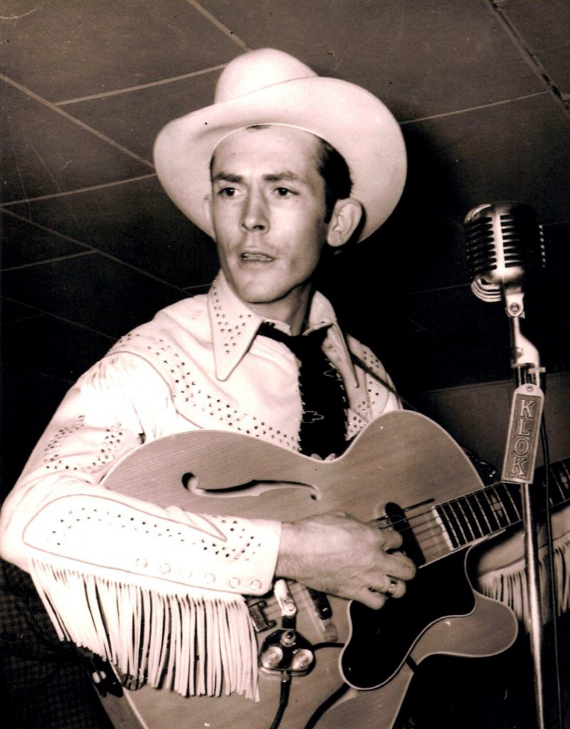 Hank Williams on stage in Nudie jacket (Courtesy of Strawberry Tongue Radio and Music Magazine)